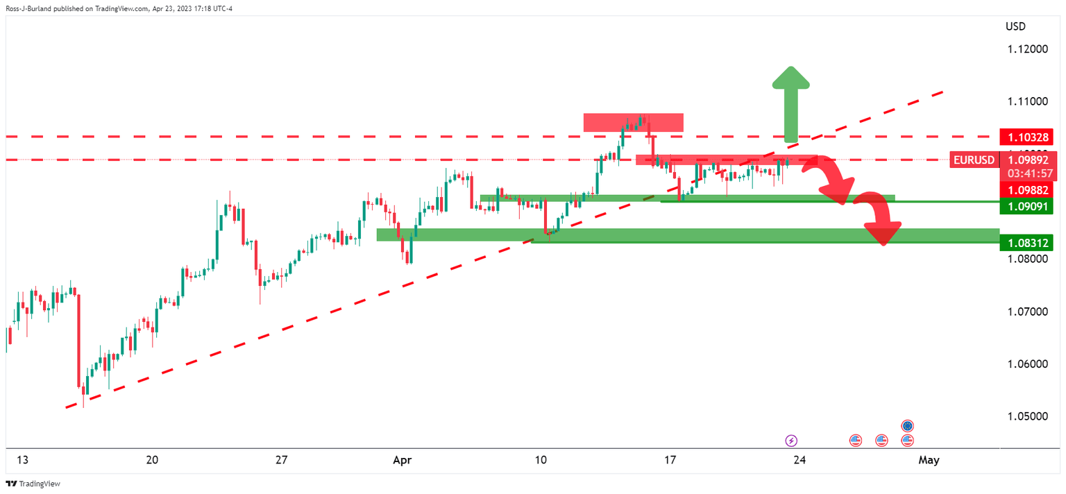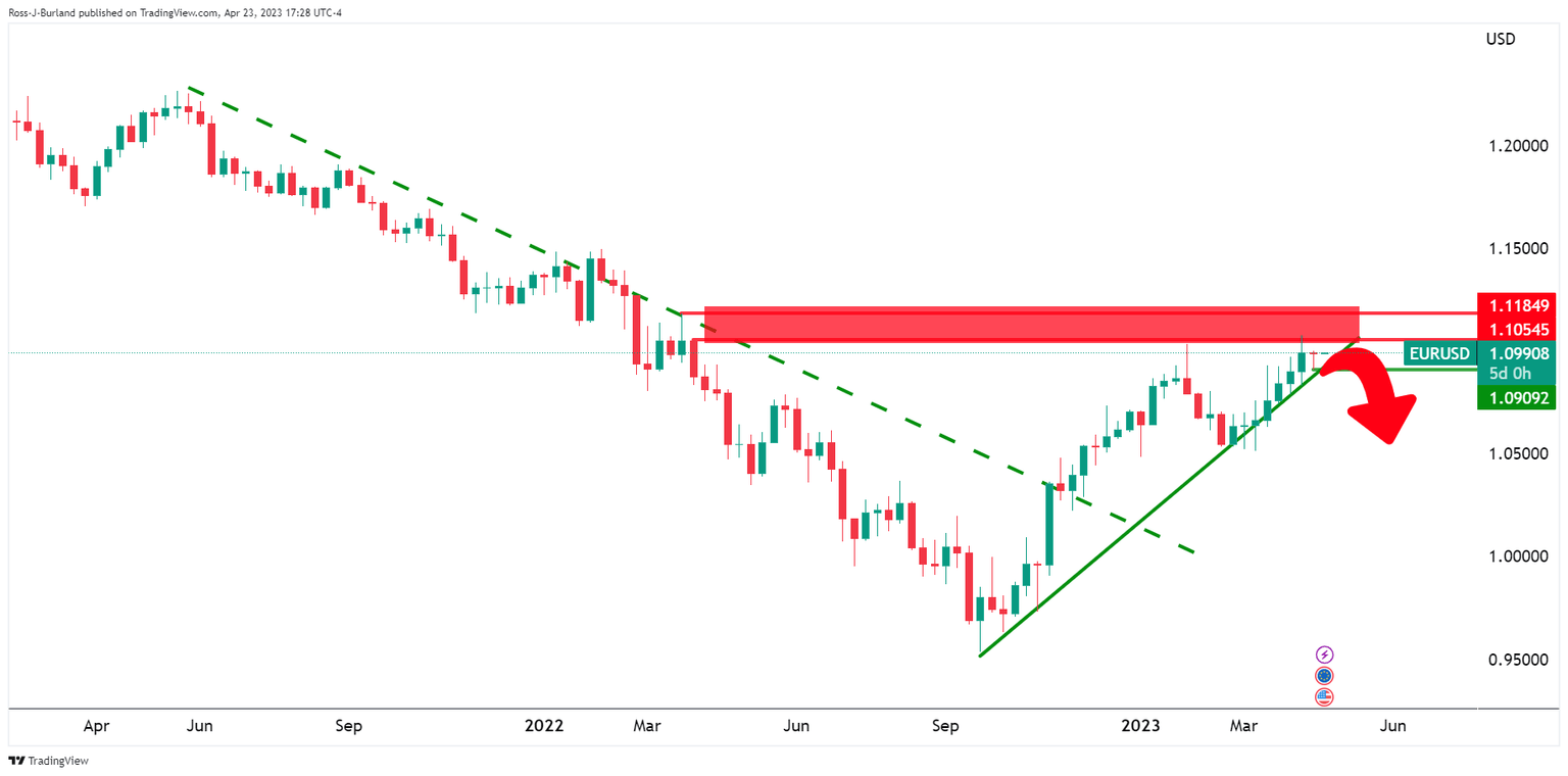 EUR/USD has moved to the backside of the bullish trend and below 1.0990 which is now acting as a resistance structure.