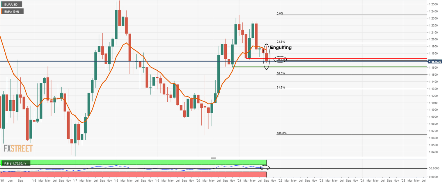Should August's monthly low break November's 1.1608 monthly low would be targeted and fail to hold, the bears will be in the running for a significant continuation to the downside for the weeks ahead.