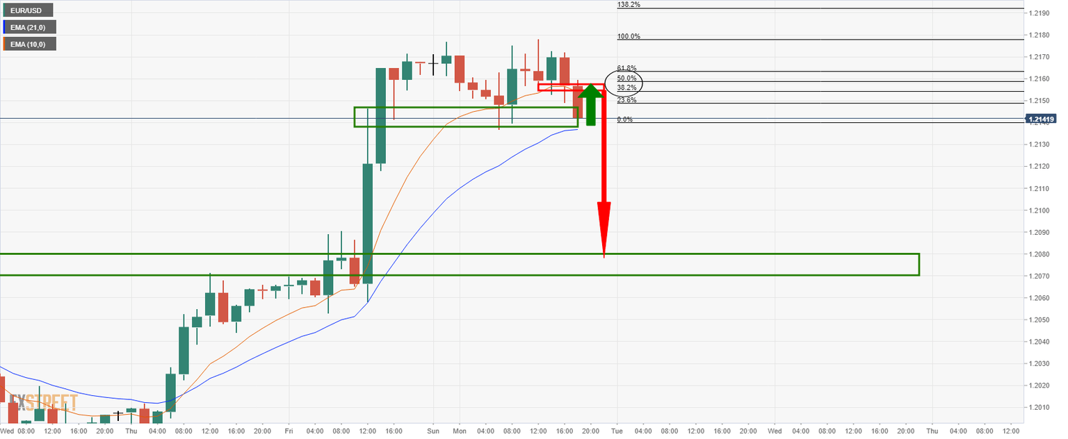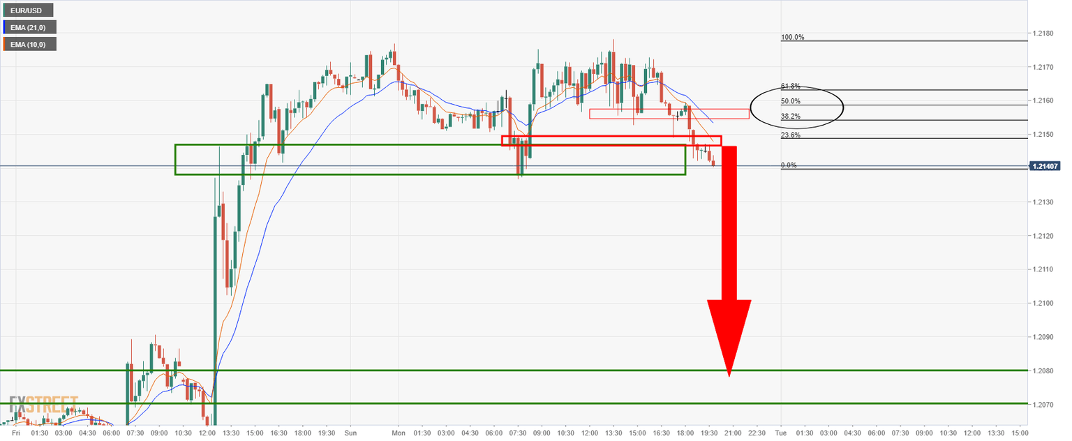 EUR/USD Price Analysis: Bears seeking break of 2-hour support