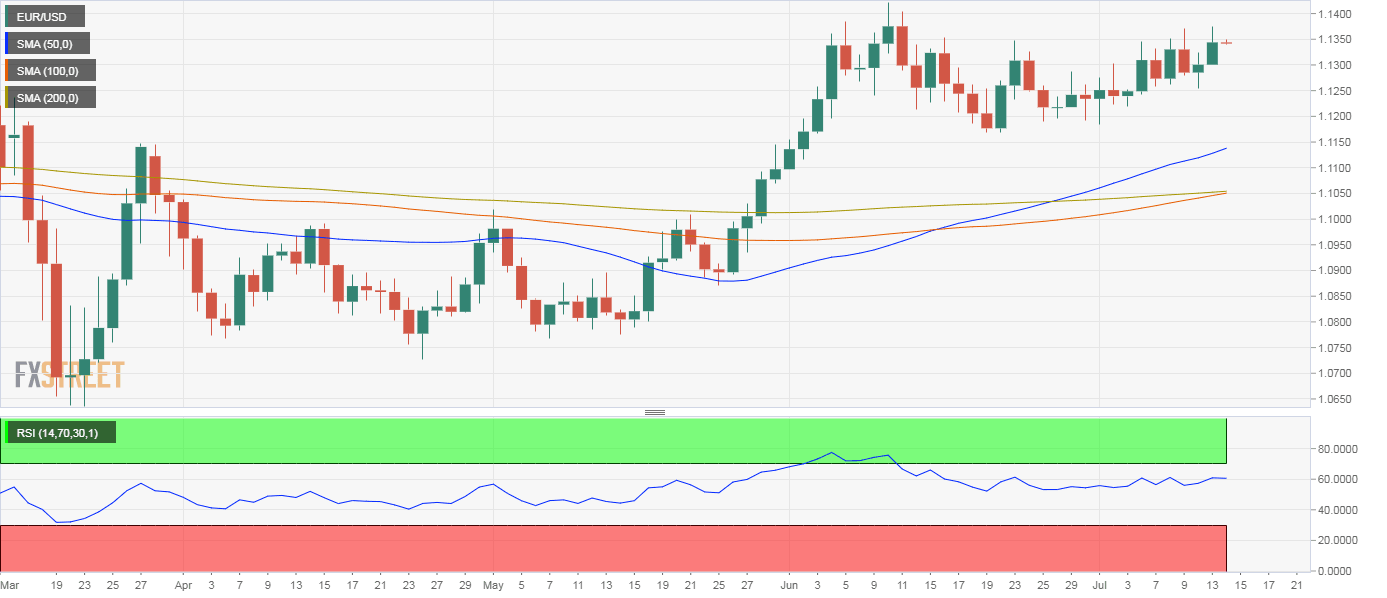- Euro bulls struggle to force a breakout above a lower high at 1.1349.