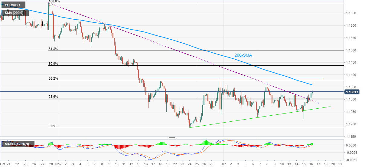 In addition to the 200-SMA hurdle around 1.1360, a horizontal region comprising multiple tops marked since mid-November, around 1.1380-85, also tests the near-term upside of the pair.
