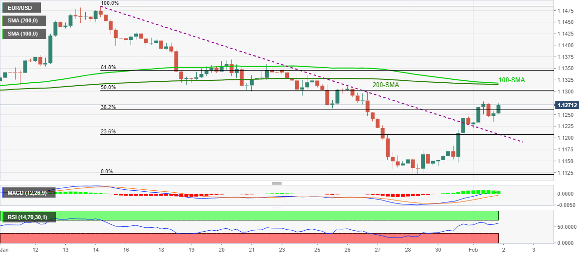 It’s worth noting that the EUR/USD buyers aim for 50% Fibo. around 1.1300 as an immediate target during the further advances. However, a confluence of the 100-SMA and 200-SMA around 1.1315-20 will be a tough nut to crack for the pair bulls afterward.