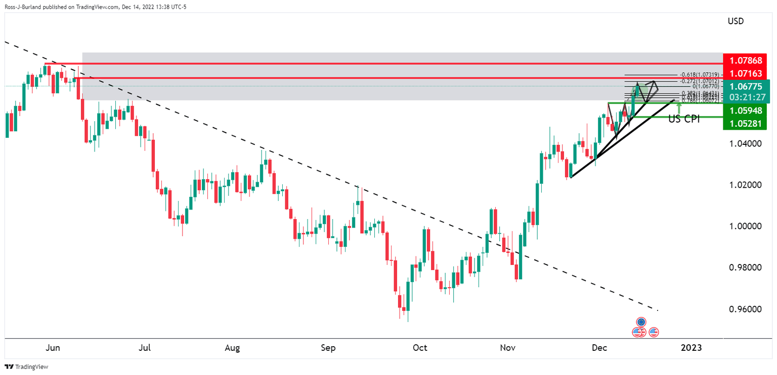 EUR/USD Price Analysis: Bulls eye a run to test 1.0700 and the bears eye 1.0600