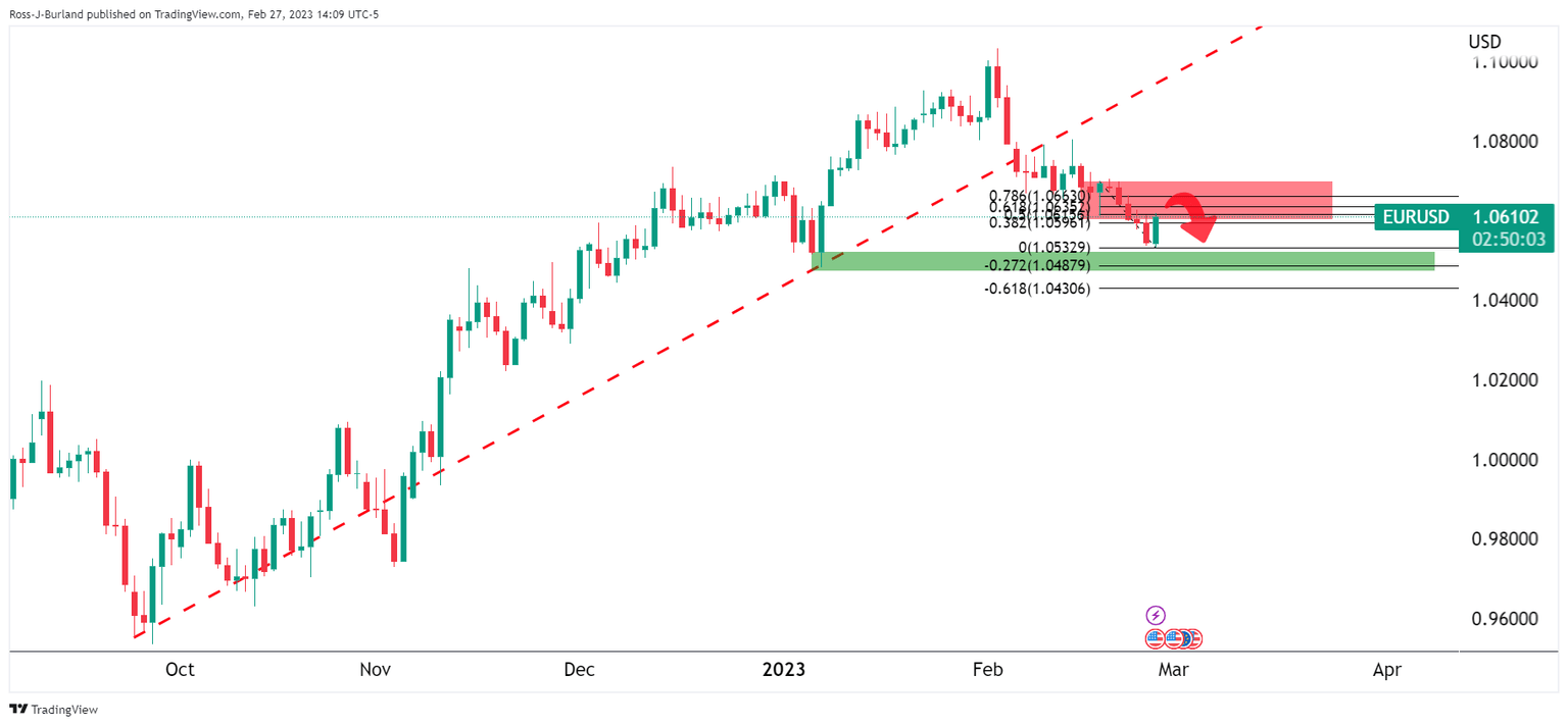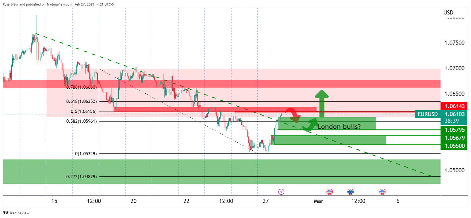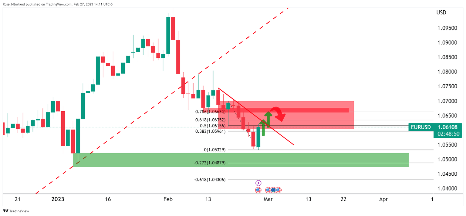 EUR/USD has come up from the lows in a sharp correction at the start of the week and leaves the focus on a continuation for the days ahead with 1.0700 eyed on a break of 1.0650 and 1.0670.