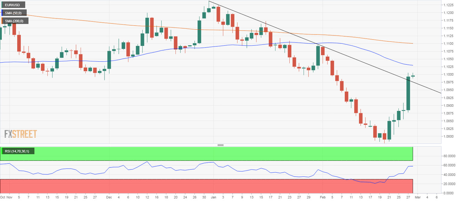 EUR/USD jumped by over 1% on Thursday, violating the descending trendline falling from Dec. 31 and Feb. 3 highs.
