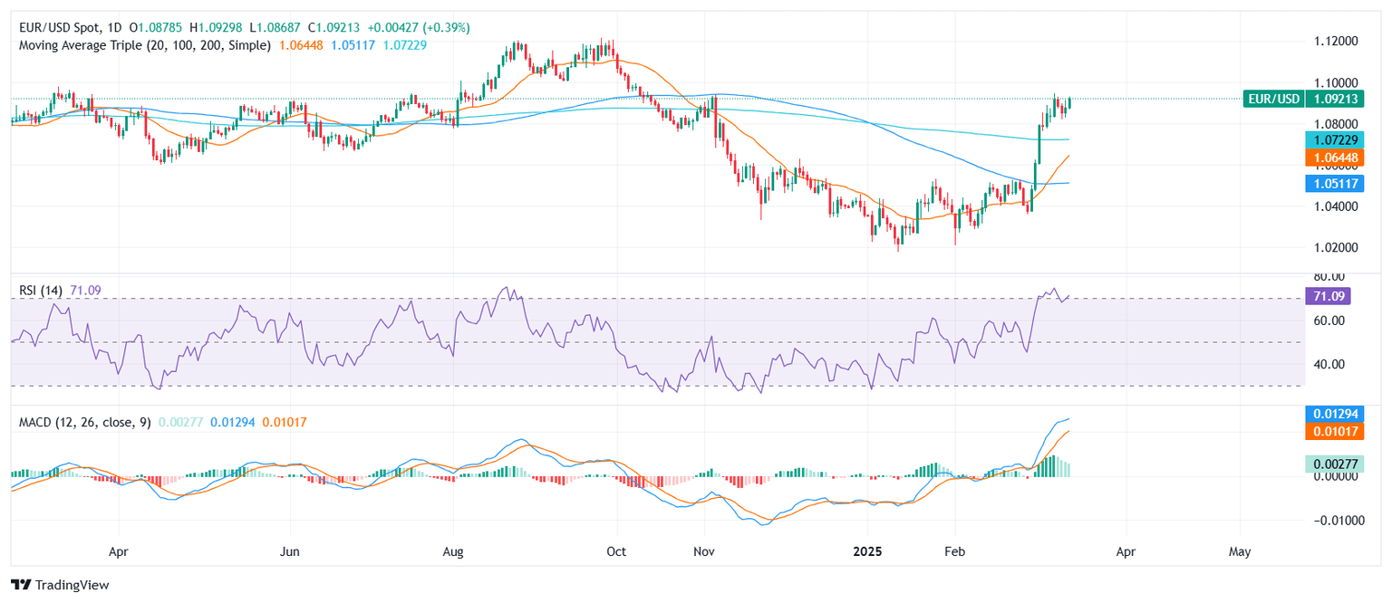 - EUR/USD was seen trading around the 1.0910 zone after the European session, recovering after recent corrections.