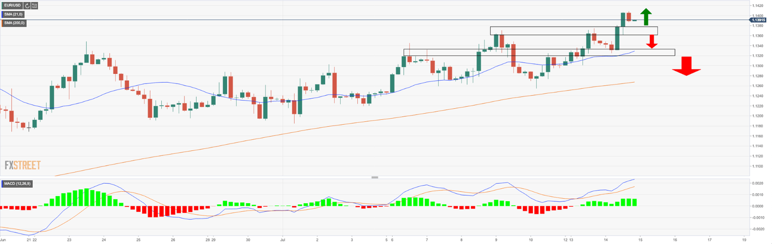 - EUR/USD bulls remain in control while above a 21 moving average on the shorter time frames.