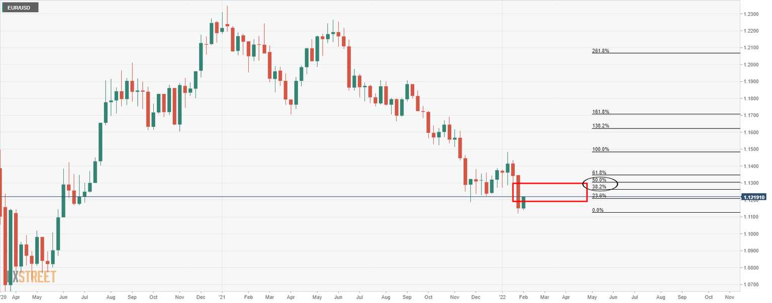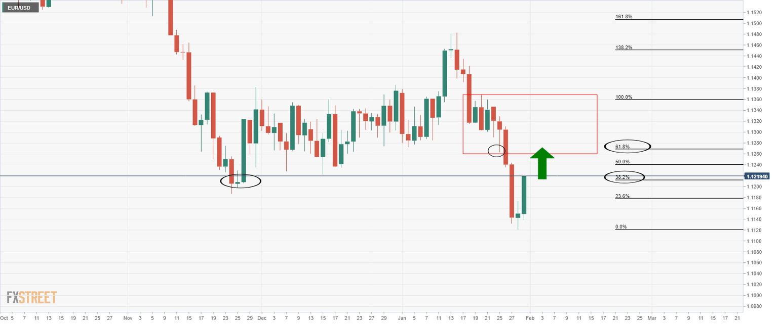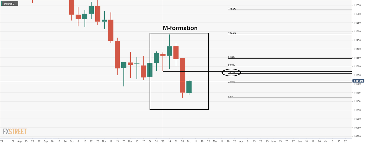 - EUR/USD bulls are correcting last week's bearish closing candle.