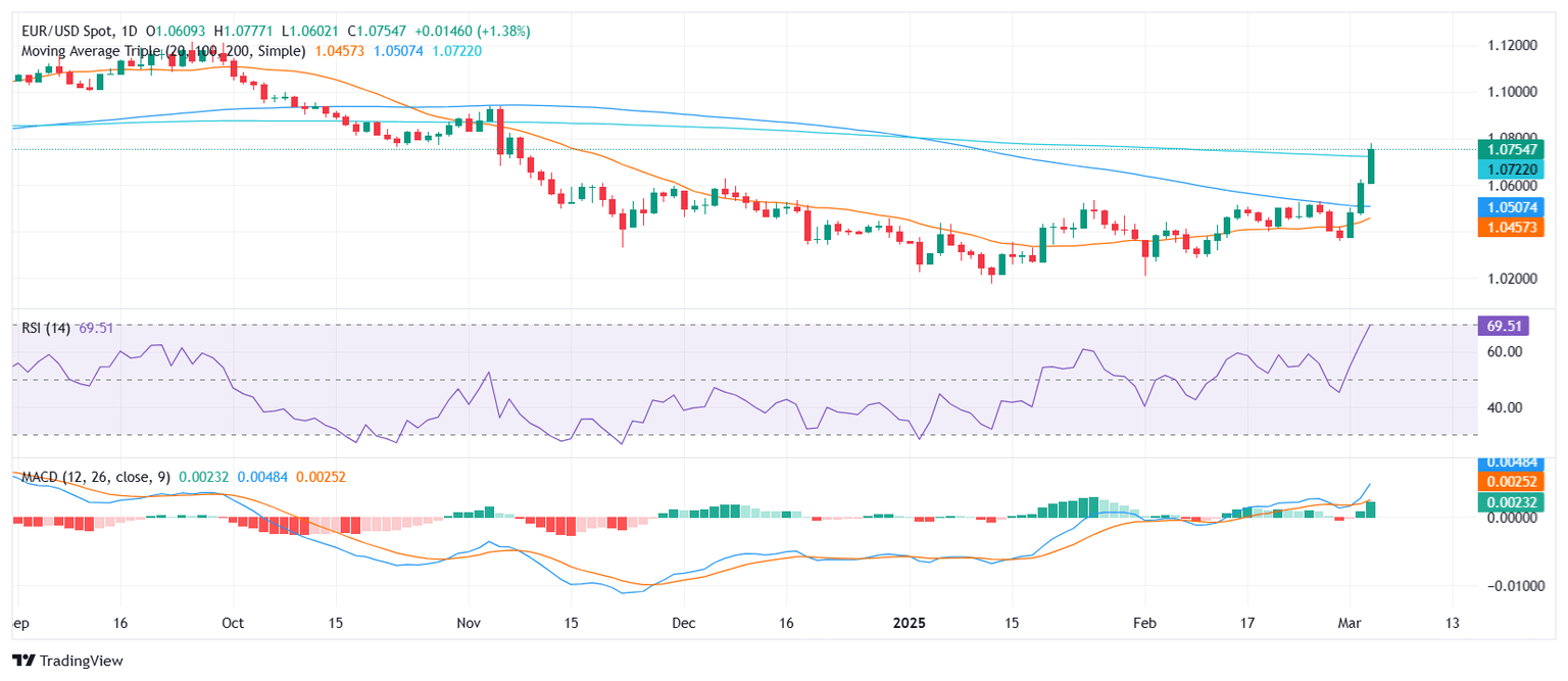 EUR/USD gained significant ground on Wednesday, pushing further into bullish territory after an already strong performance in recent sessions. The pair saw renewed demand during the European session, soaring to its highest level since November. With price action now firmly above the 20, 100, and 200-day Simple Moving Averages (SMAs), buyers appear to be in control, reinforcing an upward bias.