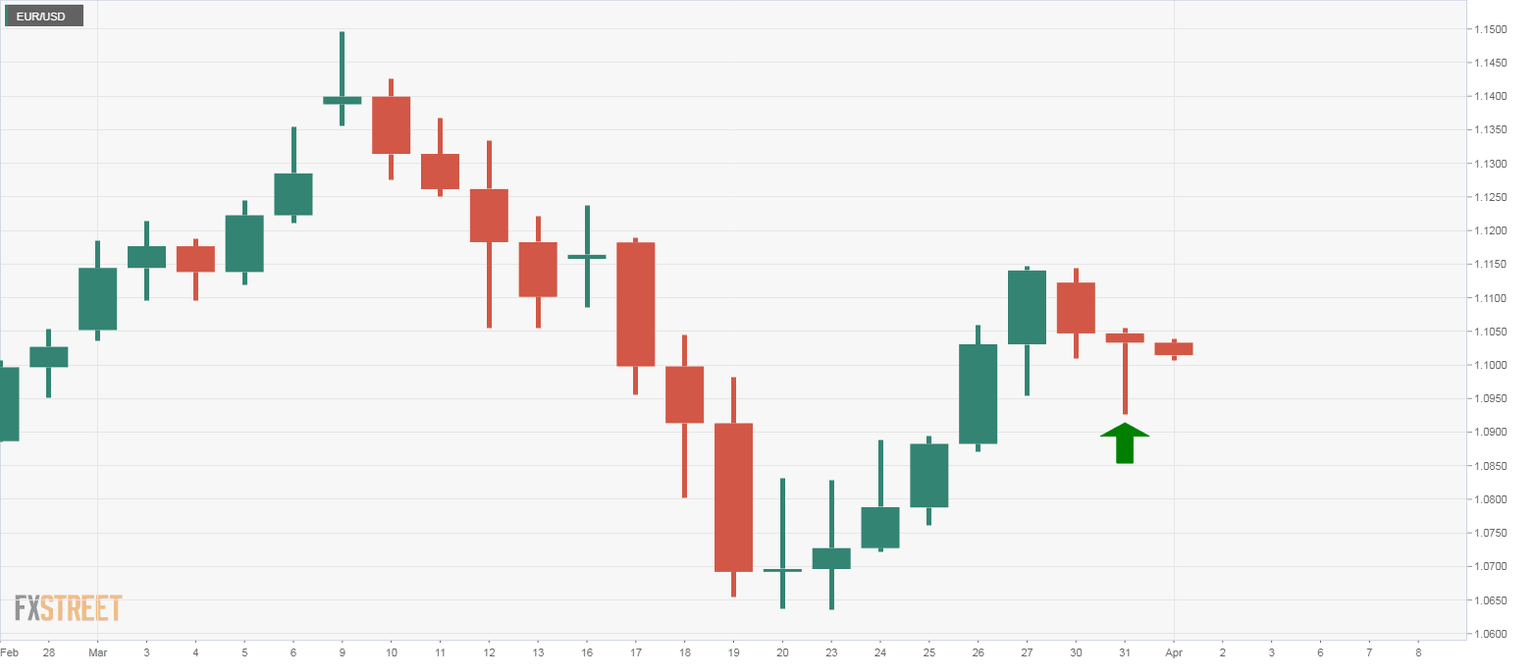 EUR/USD Price Analysis: Closing on 1.10 support, bulls need a close above Tuesday's high
