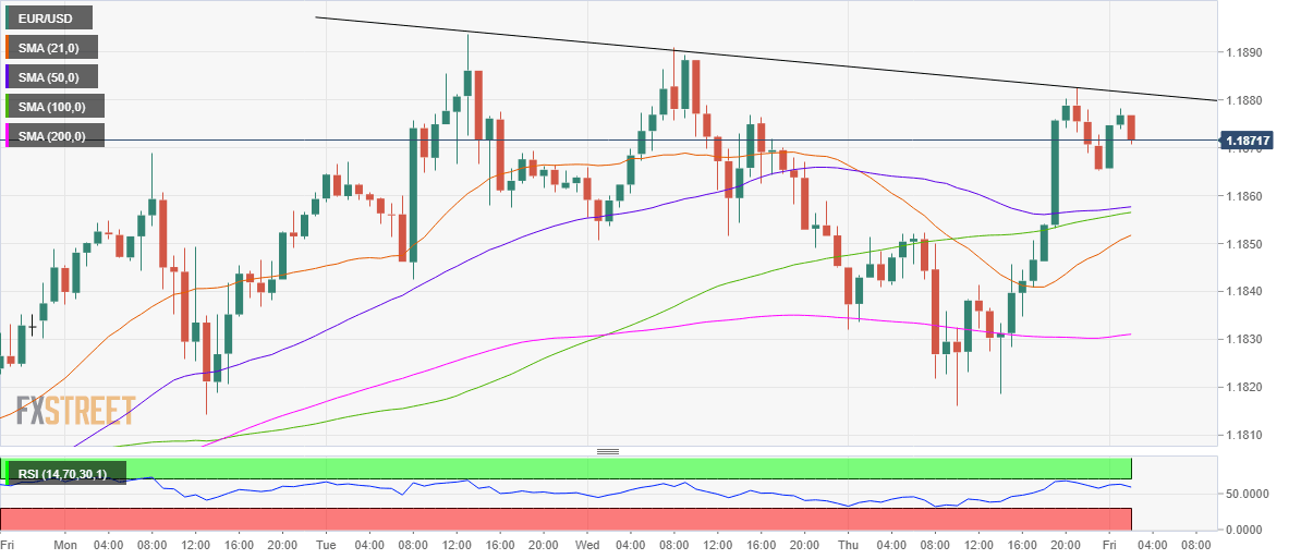 EUR/USD Price Analysis: Descending trendline resistance near 1.1880 limits immediate upside
