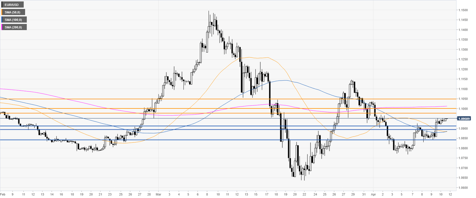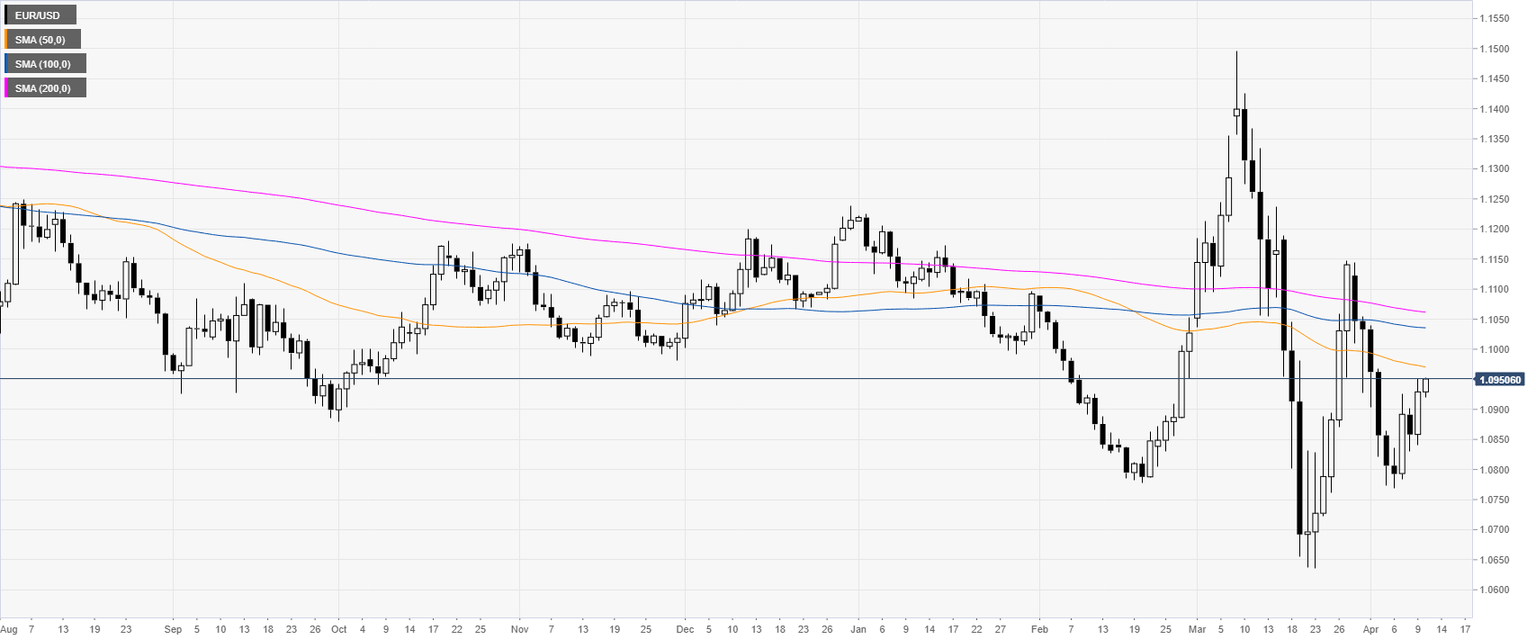 EUR/USD is rebounding from the 1.0800 figure while trading below its main SMA (simple moving average) on the daily chart. This week, the Fed announced the injection of $2.3 trillion in additional loans while US jobless claims soared above 6.6 million.