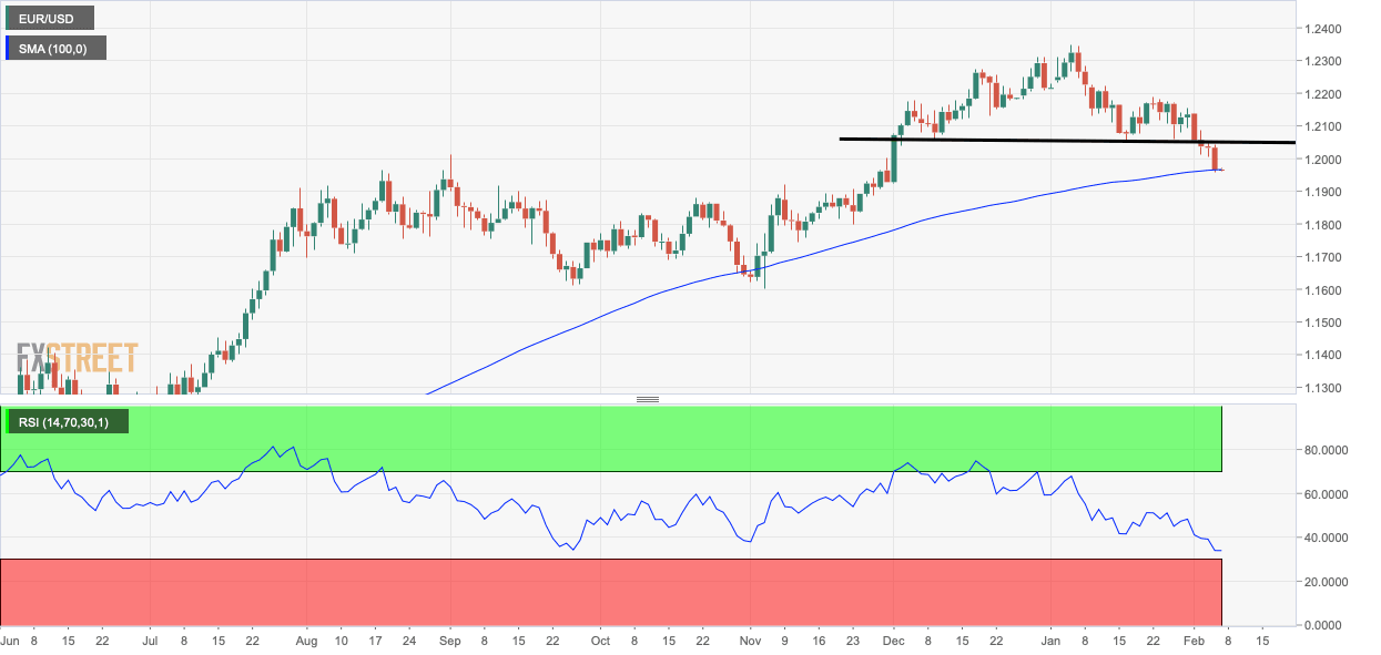- EUR/USD defends the 100-day SMA support at 1.1957.