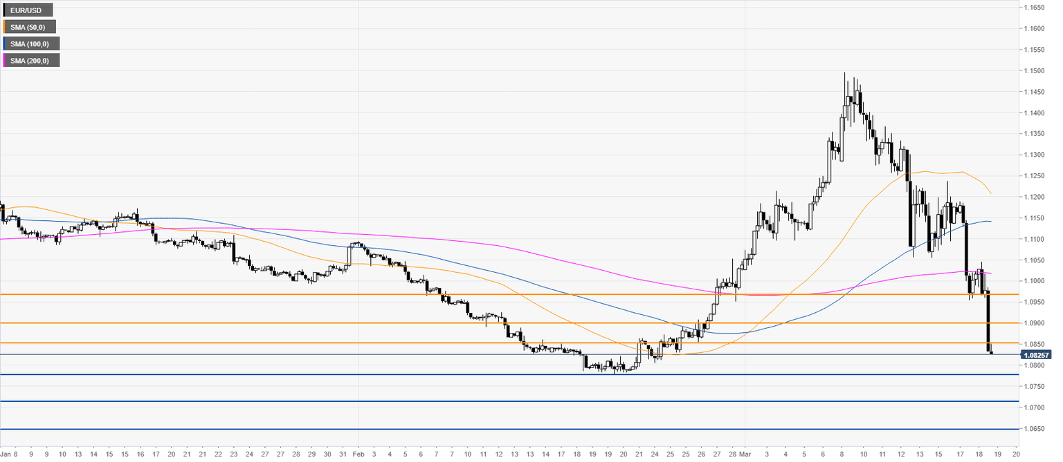 EUR/USD Price Analysis: Euro nearing 2020 lows, approaching 1.0800 figure
