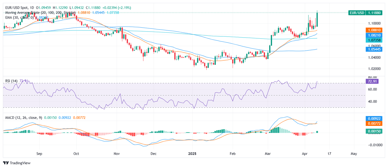 - EUR/USD trades near the 1.1200 zone after a sharp rally.