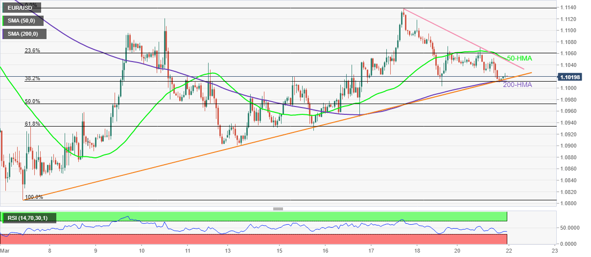 EUR/USD bears take a breather around 1.1020 during the initial Asian session on Tuesday, following a U-turn from short-term key support a few hours back.