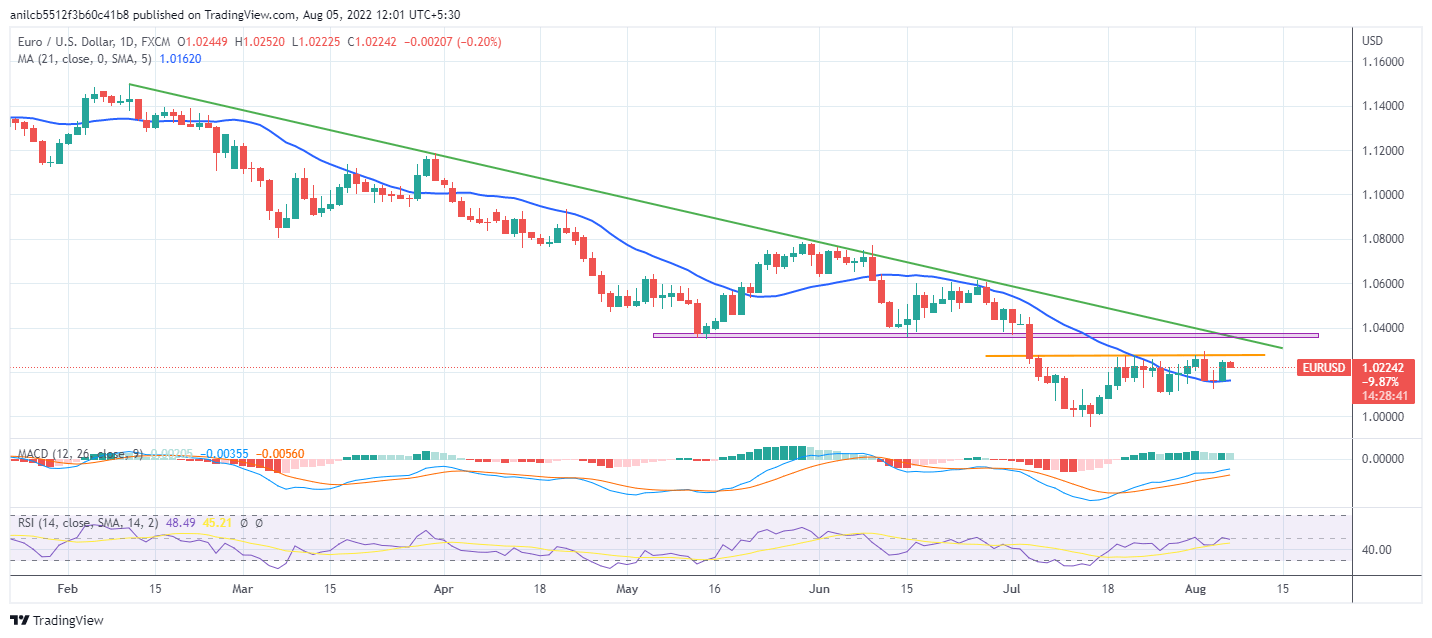 EUR/USD takes offers to refresh intraday low around 1.0225 after Germany’s Industrial Production release on early Friday morning in Europe. In doing so, the major currency pair eased below a monthly horizontal resistance line ahead of the key US employment report for July.