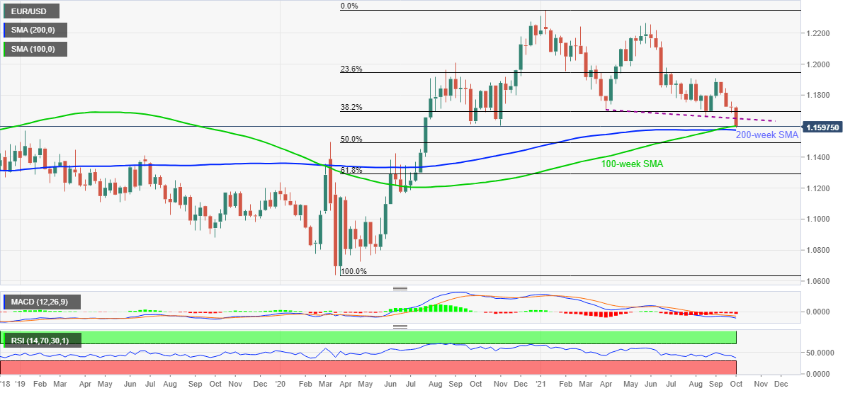 Meanwhile, the corrective pullback will have to stay beyond the 100-week SMA level surrounding 1.1600, also ignore bearish MACD, to aim for the support-turned-resistance line from April near 1.1650.