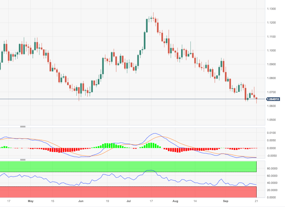 - EUR/USD slips back to the 1.0615 region, reaching new six-month lows.