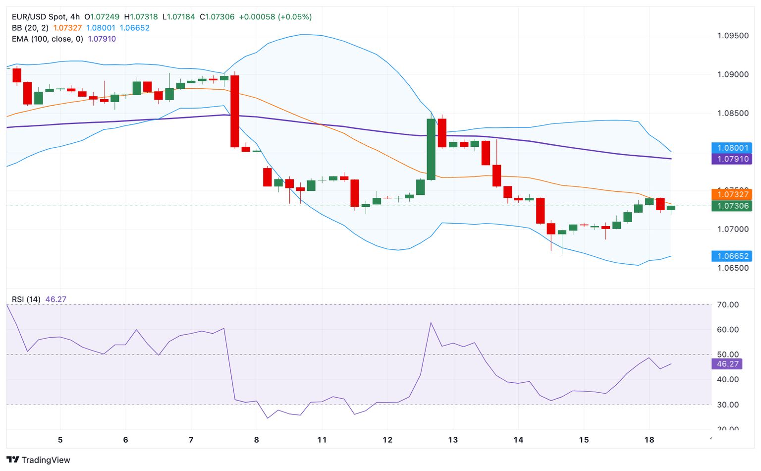 The EUR/USD pair trades on a softer note near 1.0730 on Tuesday during the early European trading hours. The modest recovery of the Greenback drags the major pair lower. Traders prefer to wait on the sidelines ahead of the Eurozone Harmonized Index of Consumer Prices (HICP) inflation data and the US Retail Sales data. Retail Sales in the US are expected to rise 0.2% MoM in May.