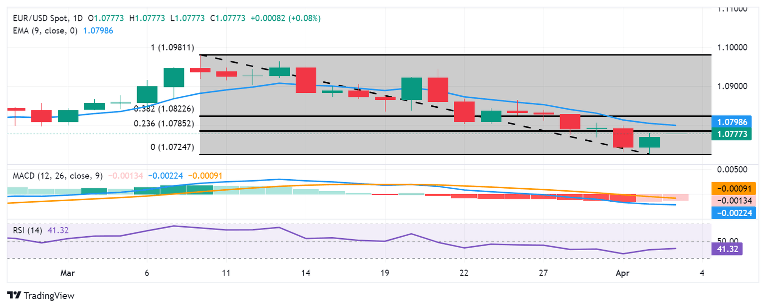 EUR/USD Price Analysis: Hovers near 1.0780 followed by 23.6% Fibonacci retracement