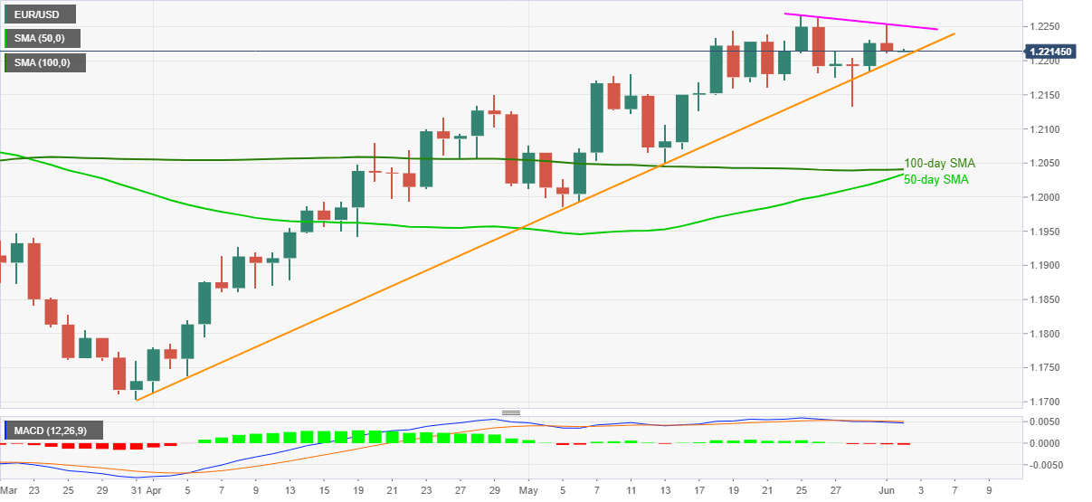 EUR/USD Price Analysis: Impending bull cross keeps buyers hopeful above 1.2200