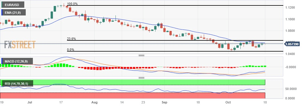 On the upside, the 21-day Exponential Moving Average (EMA) at 1.0588 stands out as immediate resistance. A breakthrough above this level could propel the EUR/USD pair towards the 1.0600 major level, followed by the 23.6% Fibonacci retracement at the 1.0628 level.