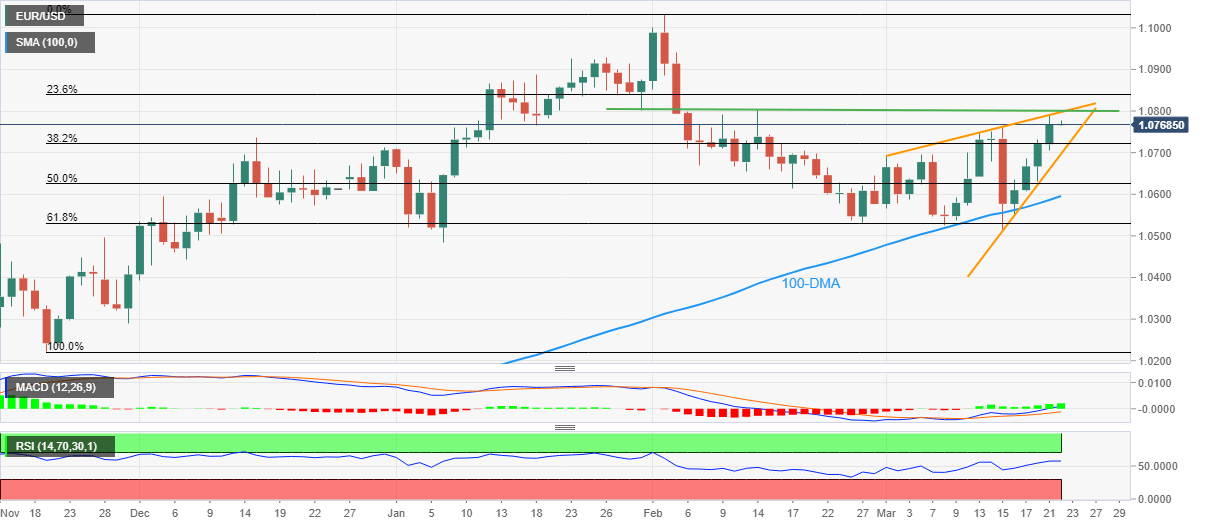 EUR/USD treads water around 1.0770-80 as pre-Fed anxiety intensifies during early Wednesday. Adding strength to the cautious mood could be a speech from European Central Bank (ECB) President Christine Lagarde, as well as an ascending triangle formation established since March 01.