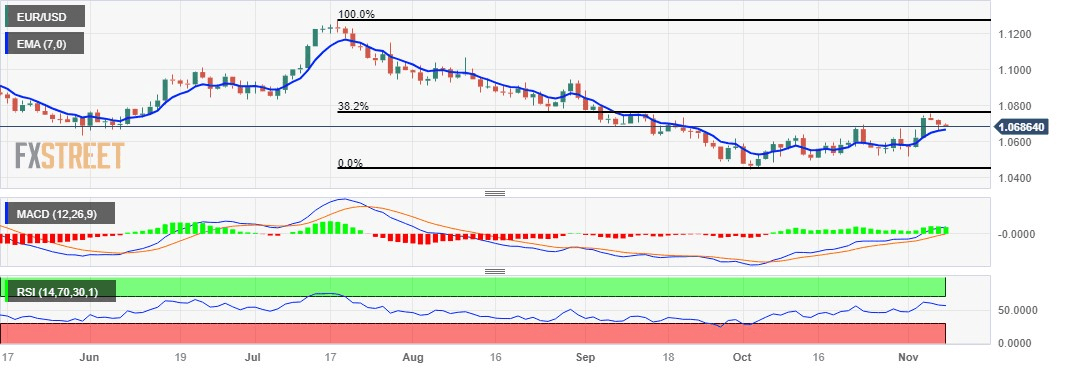 On the upside, the psychological level at 1.0700 acts as the immediate barrier. A firm breakthrough above the level could support the EUR/USD pair to explore the region around the major level at 1.0750 aligned with the 38.2% Fibonacci retracement at 1.0764.