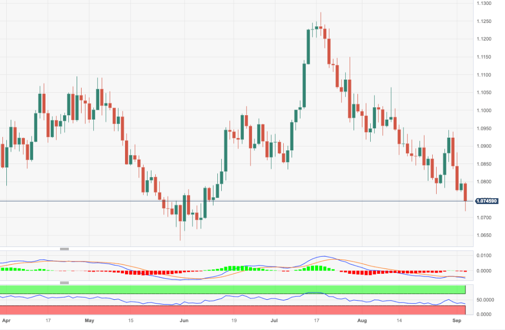 - EUR/USD sees its decline gather pace and test the 1.0715 level.