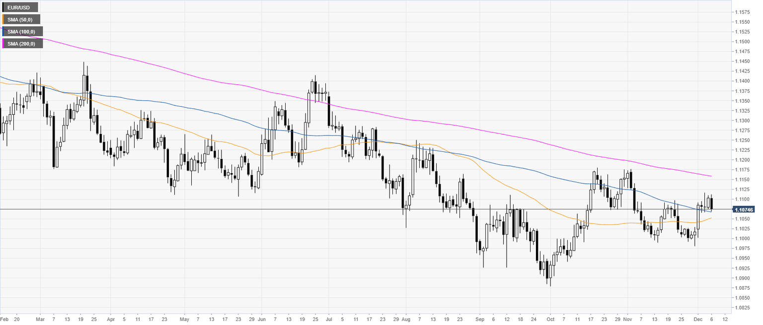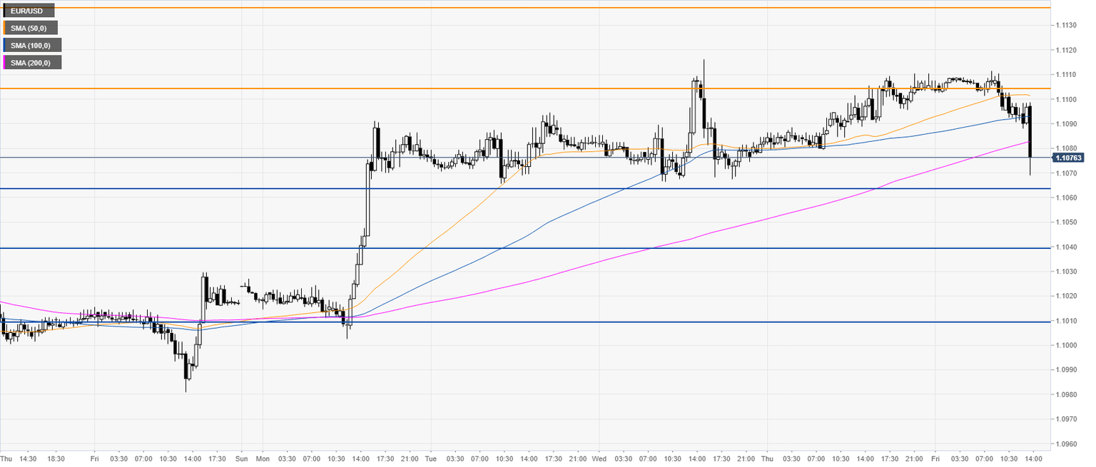 The euro is challenging the 200 SMA as it dropped to daily lows after the NFP. Resistance is seen at the 1.1103 and 1.1138 levels, according to the