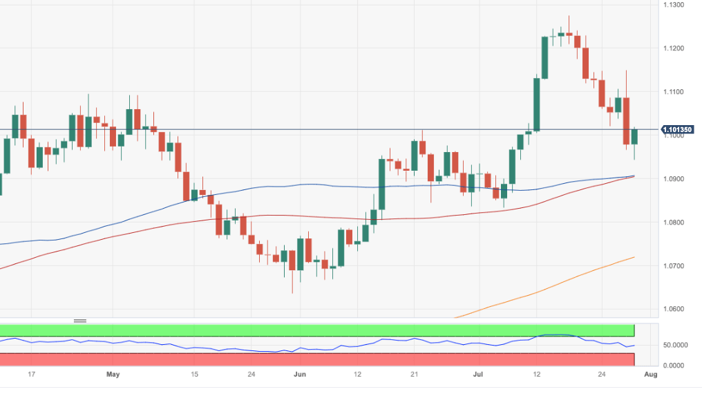 Considering the recent price action, extra weakness should not be discarded. Once the weekly low of 1.0943 (July 28) is cleared, further losses could extend to the transitory 55-day and 100-day SMAs just above the 1.0900 mark.