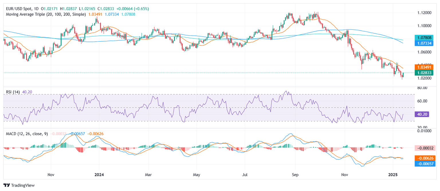 The EUR/USD pair managed to eke out a modest recovery on Tuesday, edging down to 1.0270 yet avoiding a sixth consecutive day in the red. Despite this fragile bounce, the pair remains under pressure, underscoring the persistent headwinds that have characterized its performance over the past week.