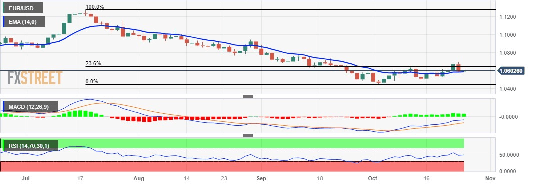 On the downside, the EUR/USD pair could meet the support around the 14-day Exponential Moving Average (EMA) at 1.0586, followed by the 1.0550 psychological level.