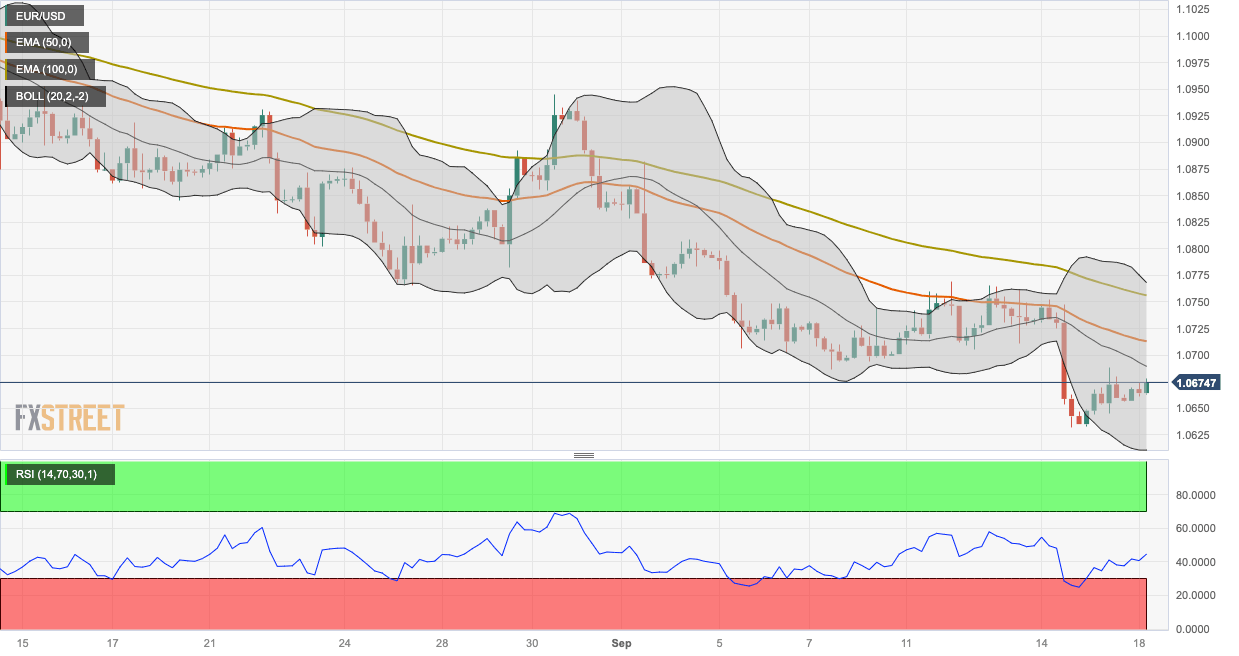 According to the four-hour chart, the EUR/USD pair holds below the 50- and 100-day Exponential Moving Averages (EMAs), implying the path of least resistance for the EUR/USD is to the downside. Adding to this, the Relative Strength Index (RSI) remains in the bearish territory below 50, supporting EUR/USD sellers for now.