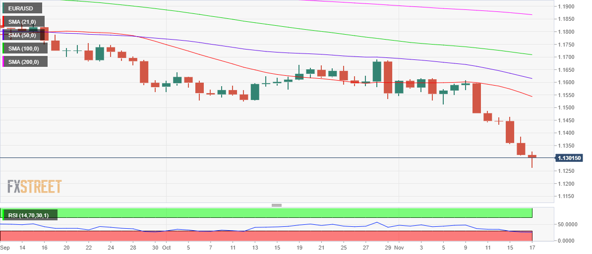 EUR/USD is struggling to extend the recovery from a new 16-month lows of 1.1264, currently battling 1.1300, as the US dollar clings onto the recent upside.