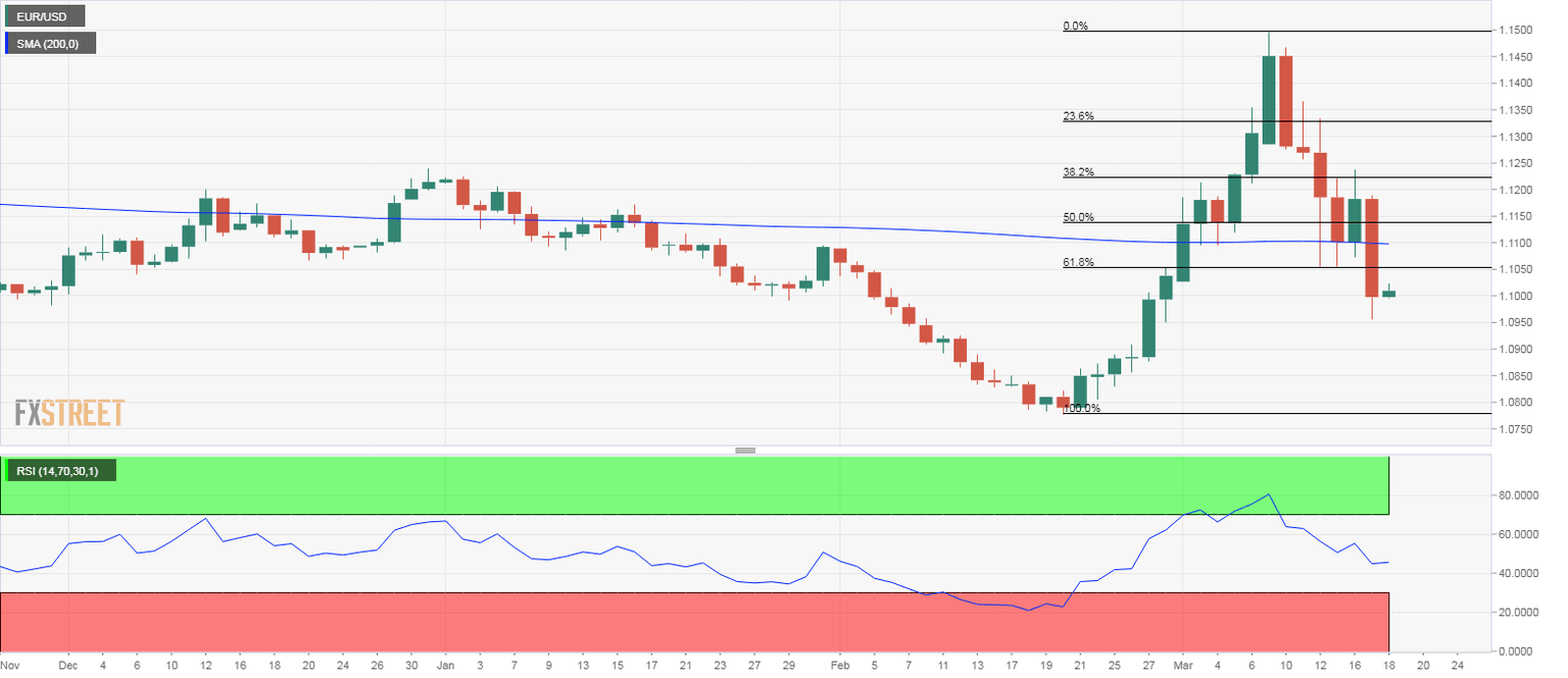 The pair is currently trading just above 1.10, having hit a low of 1.0955 on Tuesday. At that level, nearly 76% of the rally from 1.0778 to 1.1495 witnessed in the 12 days to March 3 stood erased.
