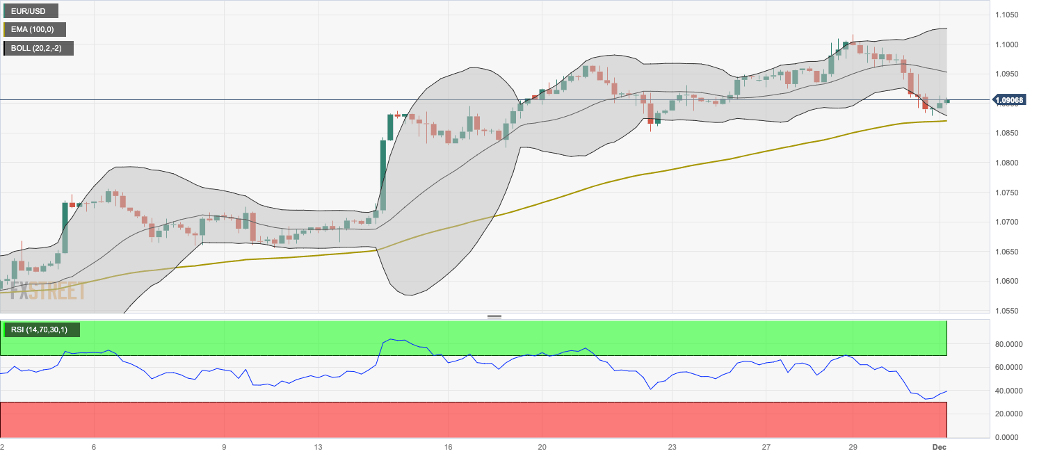 On the upside, the immediate resistance level for EUR/USD is seen near a low of November 28 at 1.0935. The next hurdle to watch is a high of November 21 at 1.0965. Any follow-through buying above the latter will see the rally to the key upside barrier at the 1.1015–1.1025 region, portraying the confluence of the Bollinger Band and a high of November 29.