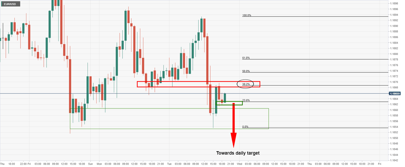Meanwhile, this opens a downside opportunity which can be monitored from a lower vantage point on both the hourly and 15-min charts as follows: