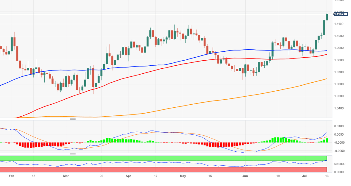 EUR/USD extends the monthly bullish performance and approaches the 1.1200 hurdle for the first time since February 2022.