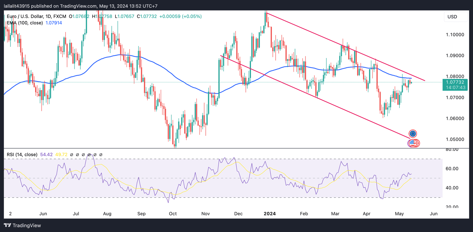Technically, EUR/USD remains stuck within a descending trend channel since mid-December 2023. The major pair keeps the bearish vibe unchanged as it is below the key 100-period Exponential Moving Average (EMA) on the daily timeframe. Nonetheless, the 14-day Relative Strength Index (RSI) stands in bullish territory around 54.5, suggesting that further upside cannot be ruled out.