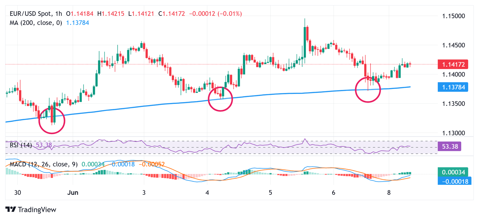 From a technical perspective, the EUR/USD pair once again showed resilience and bounced off the 100-hour Simple Moving Average (SMA) support on Friday. The subsequent move-up and positive oscillators on the daily chart favor bulls. Hence, some follow-through strength towards the 1.1450-1.1455 horizontal resistance en route to last week's swing high, closer to the 1.1500 psychological mark, looks like a distinct possibility.