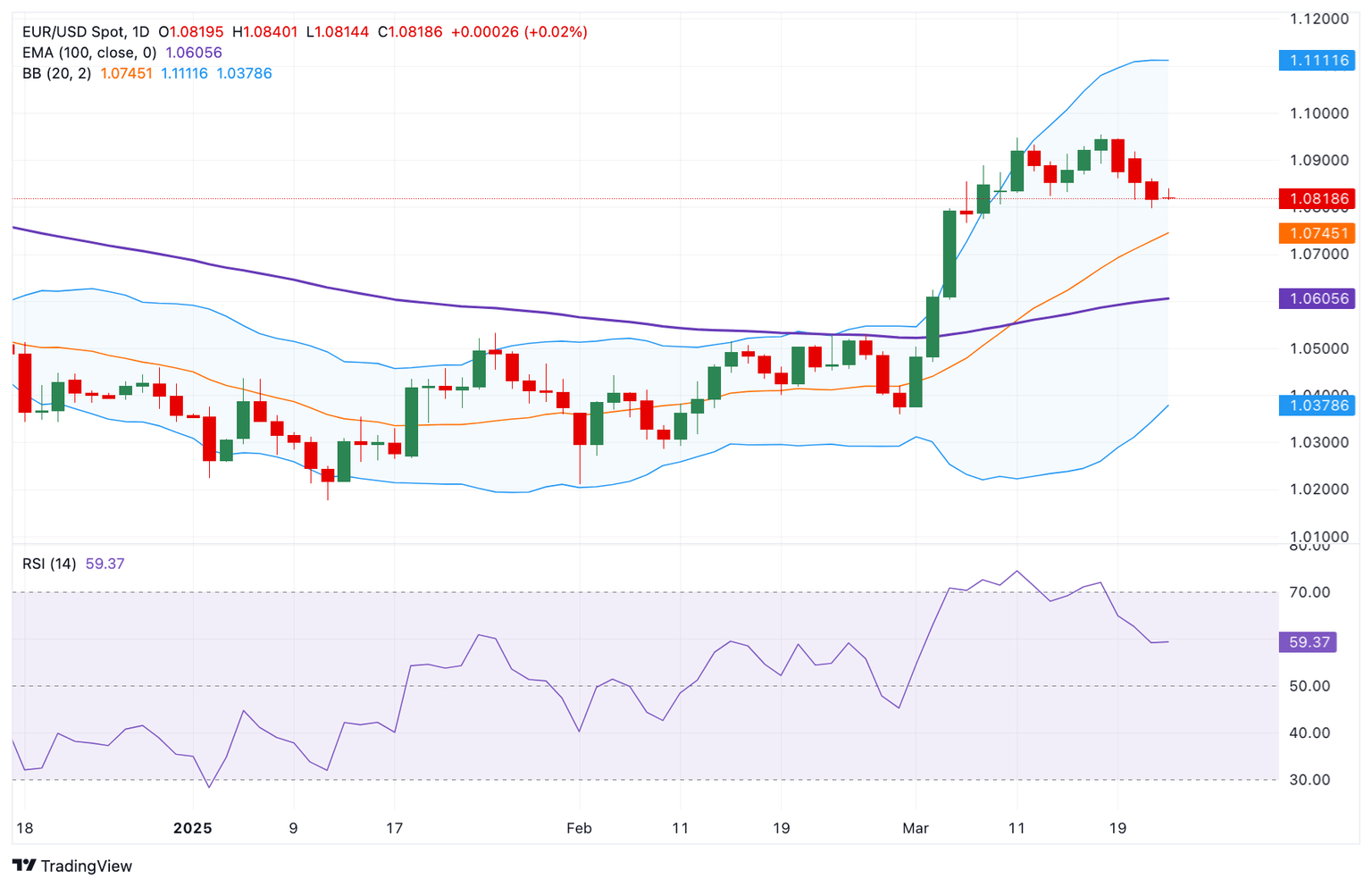 On the flip side, the low of March 7 at 1.0775 acts as an initial support level for the major pair. The key contention level is located in the 1.0605-1.0600 zone, representing the 100-day EMA and the round figure. Sustained trading below the mentioned level could see a drop to 1.0418, the low of February 20.