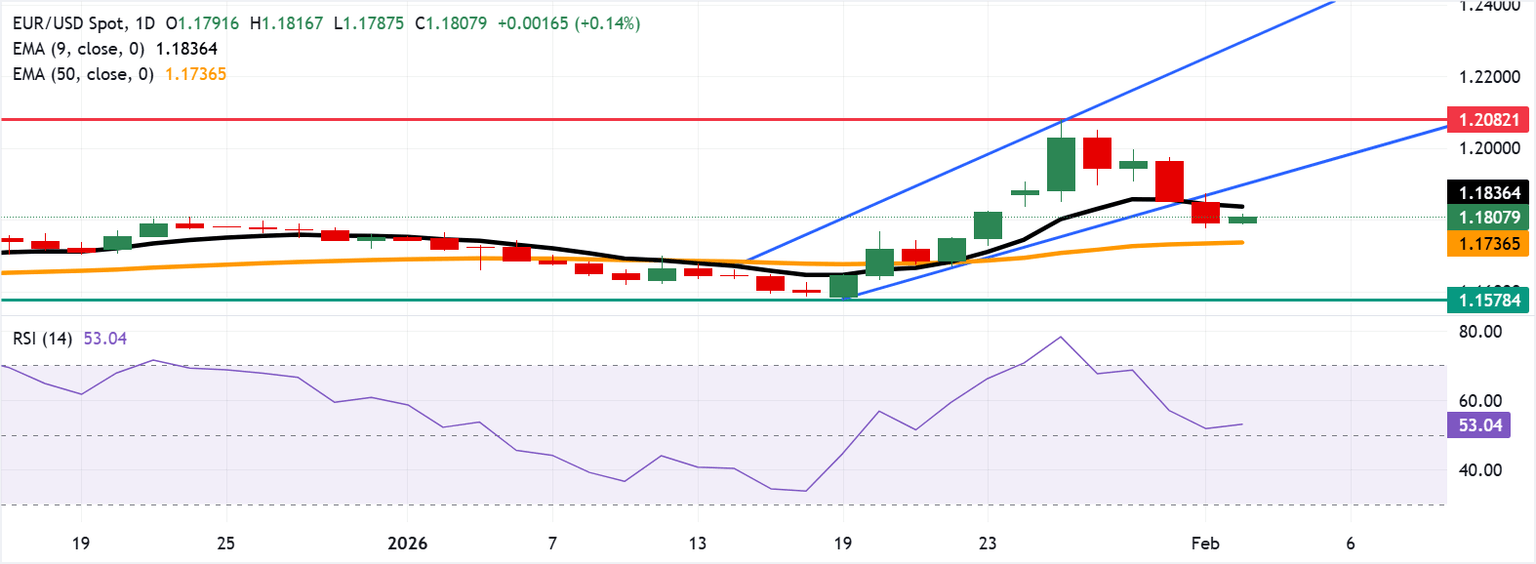 EUR/USD Price Forecast: Rises above 1.1800 toward nine-day EMA barrier