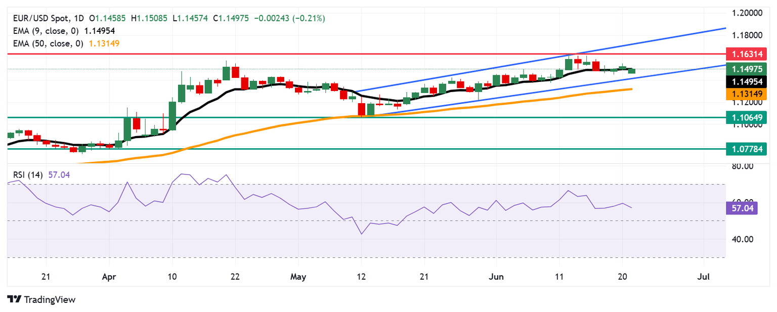 EUR/USD Price Forecast: Tests nine-day EMA barrier near 1.1500 due to bullish bias