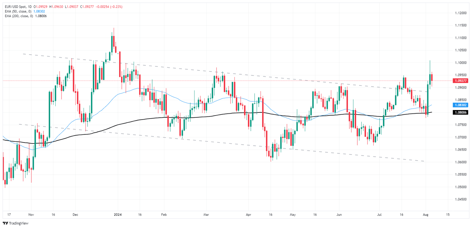 EUR/USD trimmed recent gains and slipped back from the 1.1000 handle on Tuesday as markets continue to digest a recent rebalancing in FX market flows. Investors have recovered their footing and resumed betting on an uptick in the pace of rate cuts from the Federal Reserve (Fed) beginning in September. Pan-EU economic data did little to meaningfully move the needle on Tuesday, with a mid-tier release schedule on the cards for Wednesday.