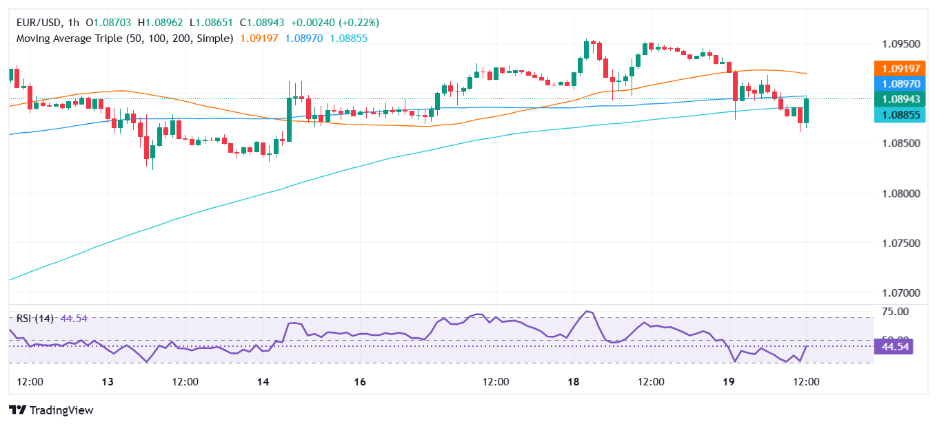 Pair trades volatile near 1.0860–1.0900 amid hawkish Fed outlook