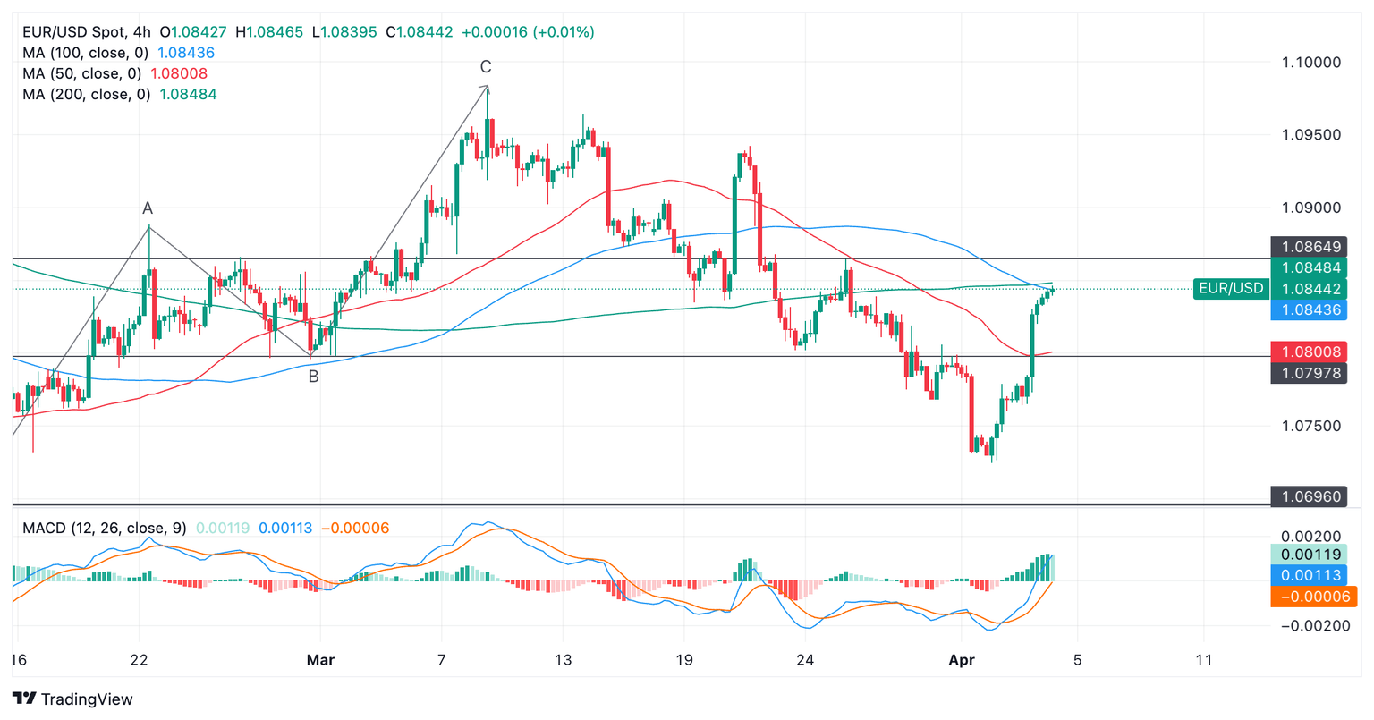 EUR/USD rebounded strongly on Wednesday after the release of ISM Services PMI for March undershot expectations. But it was probably the sharper fall in the ISM Services Prices Paid component figure, which measures inflation in the sector, which was the main driver of USD weakness.