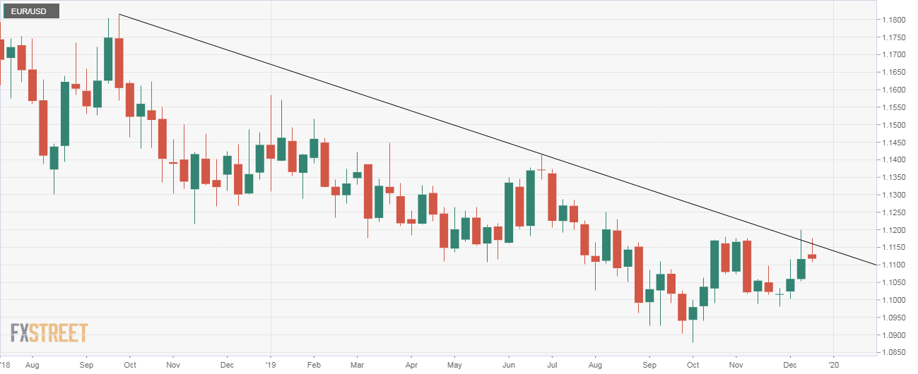 - EUR/USD bulls need a weekly close above a falling trendline hurdle.