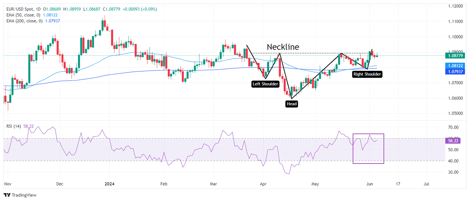 EUR/USD is stuck in a tight range below 1.0900. The major currency pair forms an Inverted Head and Shoulder (H&S) pattern on a daily timeframe, which would result in a bullish reversal after breaking the neckline marked from the April 9 high at 1.0885.